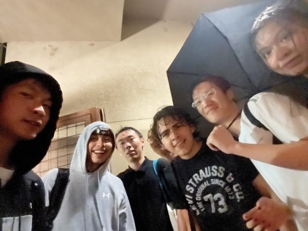 MY UMBRELLA IS BROKEN, MATEO IS USING A TRASH BAG AS UMBRELLA, ERIC IS RUNNING WITH NO SHOES.