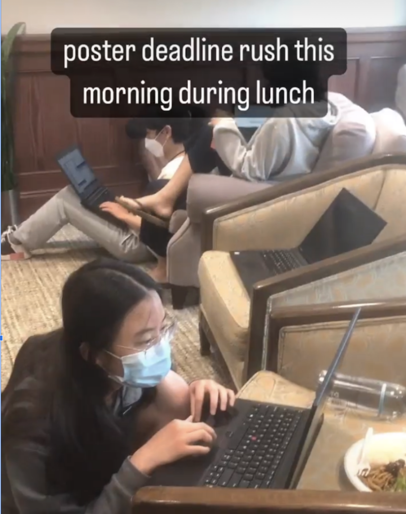 It’s officially cram season at SSP, the time when the clacking of computer keys echo off the walls with no sign of slowing down. That’s right, our final posters were sent out this afternoon for printing and our final manuscript is due tomorrow at 11:30 am. Our TA’s can testify to the chaos they witnessed in the Honors South lobby this morning; twenty teenagers sprawled across four sofas of varying sizes, spilling over the armrest and onto the carpeted floors. I woke up at 10:30 am, despite my 7:50, 7:53, 7:58, 8:02, and 8:08 alarms screaming in my face (I involuntarily become deaf some mornings I guess), to the realization that we had a poster to put together in two and half hours. I don’t remember what happened in the next 150 minute besides the fact that it was filled with a flurry of panic and frustration at Google Slides.