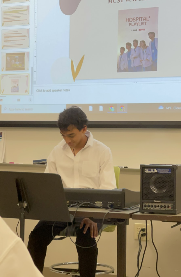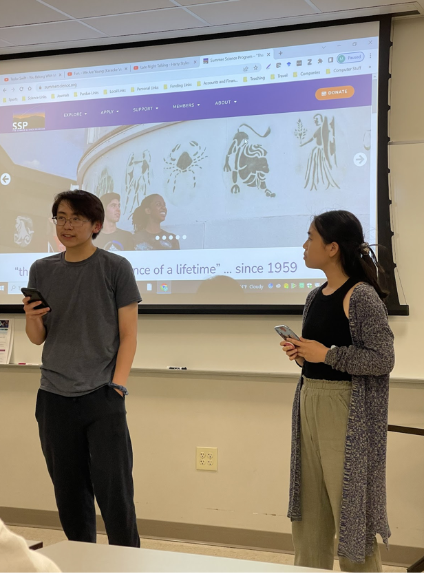 We had talent shows today! We started with a super amazing string’s orchestra performance by Alexis, Diego, Grace, and Joseph. Then, we had a piano show by Cory; magic show by Konnor; K-drama by Seyhun; another piano show by Ritvik (extremely amazing, basically it showed the result of his years of constant practice); ballet performance by Payton; poetry recitation by Nathan and Aniyah; HIV protease inhibitor design by Eric; singing performance by Colin; Tetris visual feast by Jamilla. After that, we had a large group of people doing karaoke together. Our four dear TAs also performed a song by Lady Gaga (I like Colin’s body twisting). We had another karaoke group singing a Chinese Song. Finally, our talent show ended with Dimitra’s guitar solo.