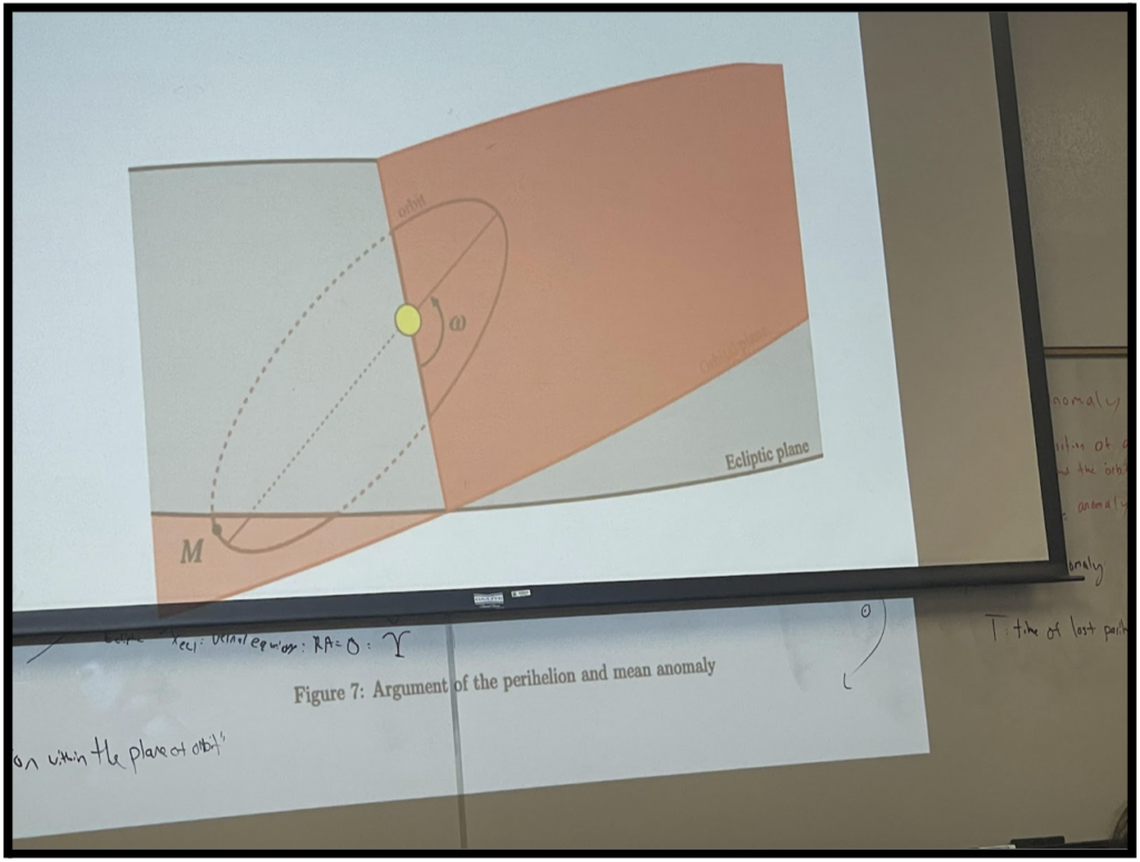 After lunch, which was some really delicious chicken and mashed potatoes, then we headed off to our second afternoon lecture. The second afternoon lecture was about orbital elements, and in all honesty I was trying my best not to fall asleep because I was really tired. However, once I realized we got a new assignment for the orbital elements we just learned, I knew I had to lock in, so I got it done and continued with the rest of my day.