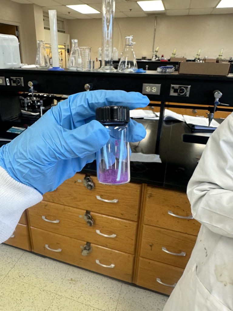 We started off the day by collecting our powdery samples for recrystallization. My powder for this specific complex was a very pretty purplish color.